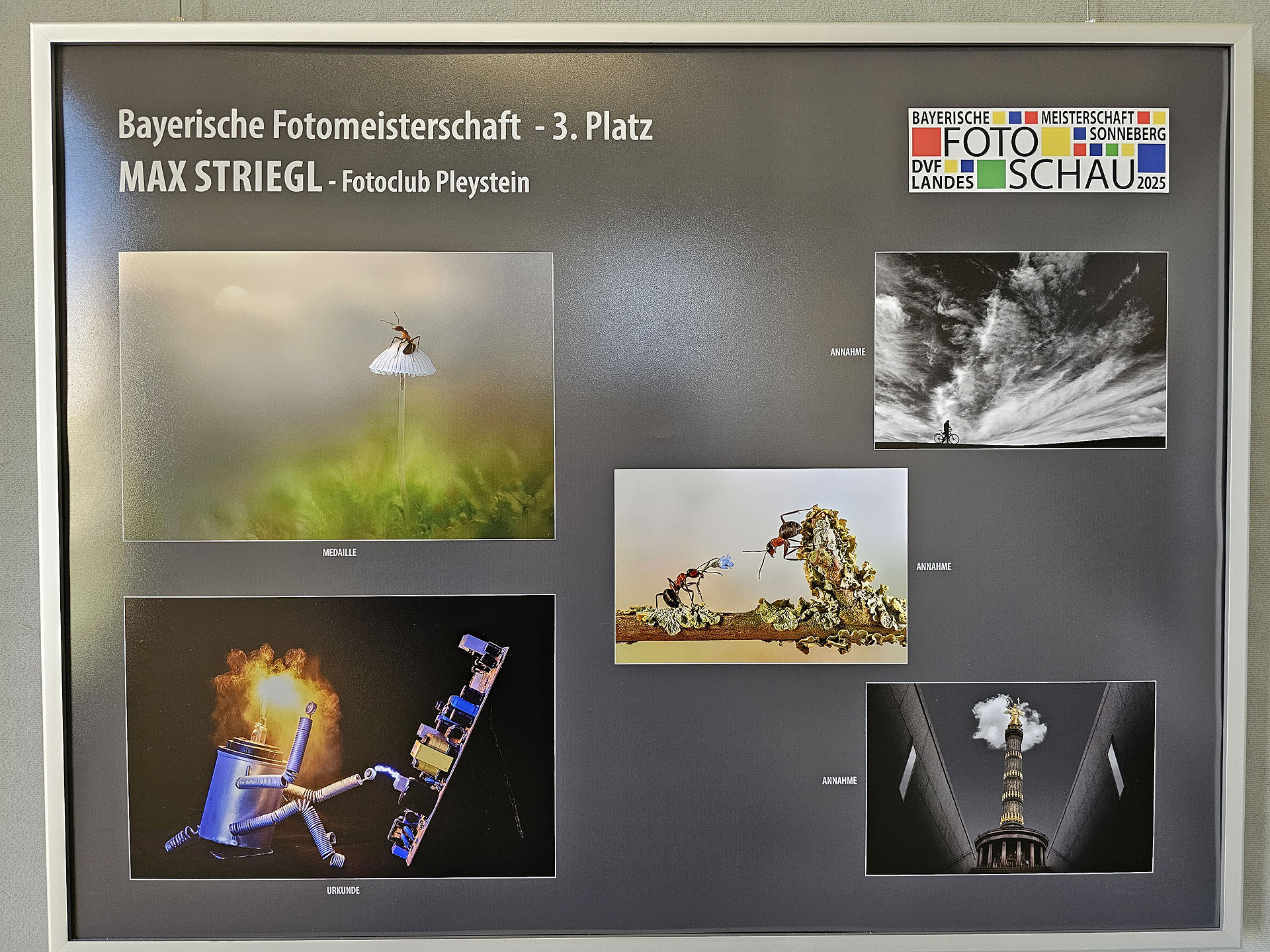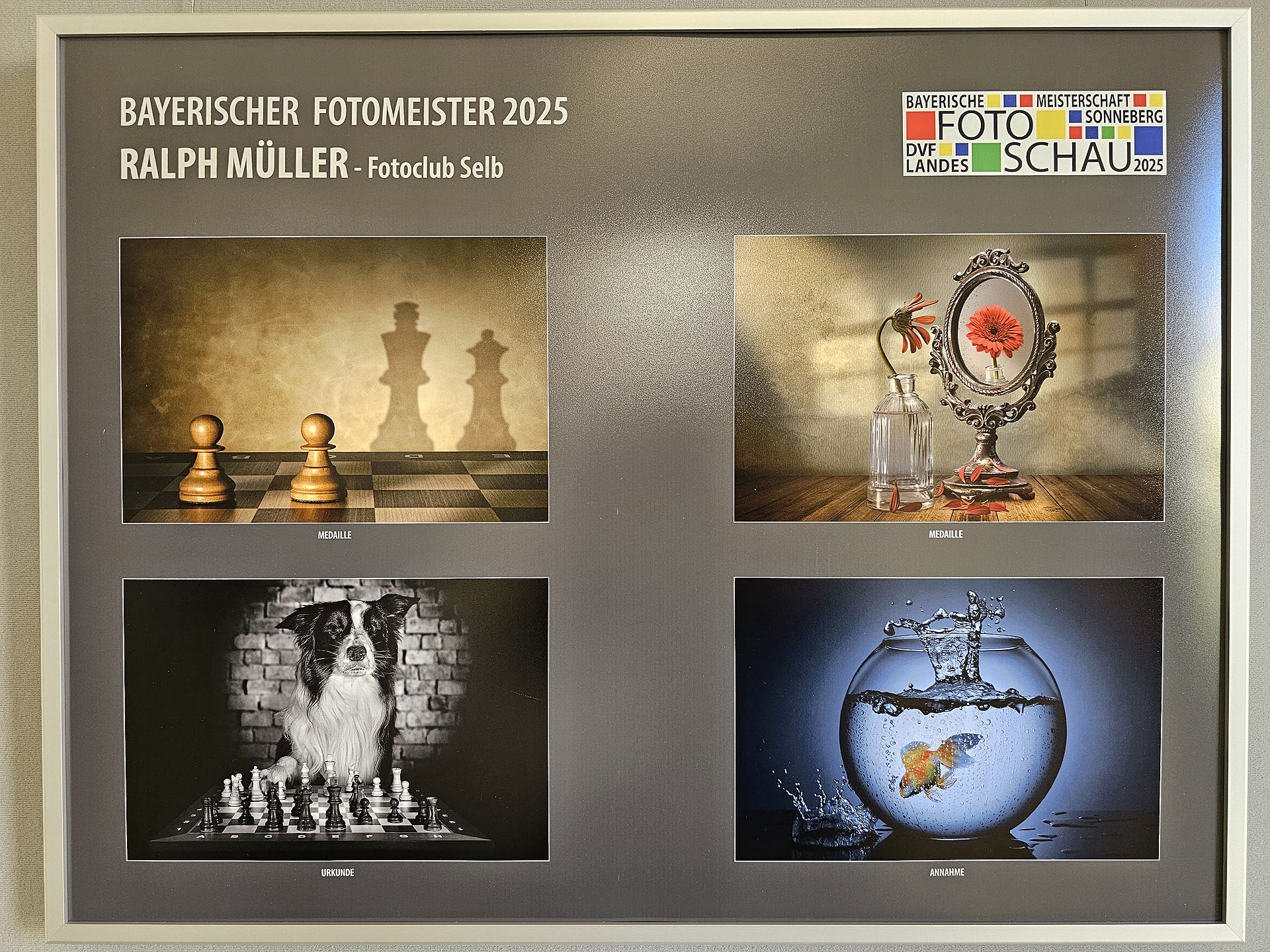 Wir haben uns am 03.10.2025 vor Ort einen persönlichen Eindruck der Fotografien verschafft. Unsere Meinung: Herausragende Fotografien, von denen der weit überwiegende Teil absolut zurecht Annahmen erzielt hat oder mit Urkunden und Medaillen bedacht wurde. Nach unserem dafürhalten hätte manches Foto aus den Annahmen eine Urkunde oder gar Medaille verdient – und andersherum. Aber genau das zeigt, dass eine Jurierung niemals völlig objektiv sein kann. Gottseidank, denn sie wird ja von Menschen vorgenommen.
