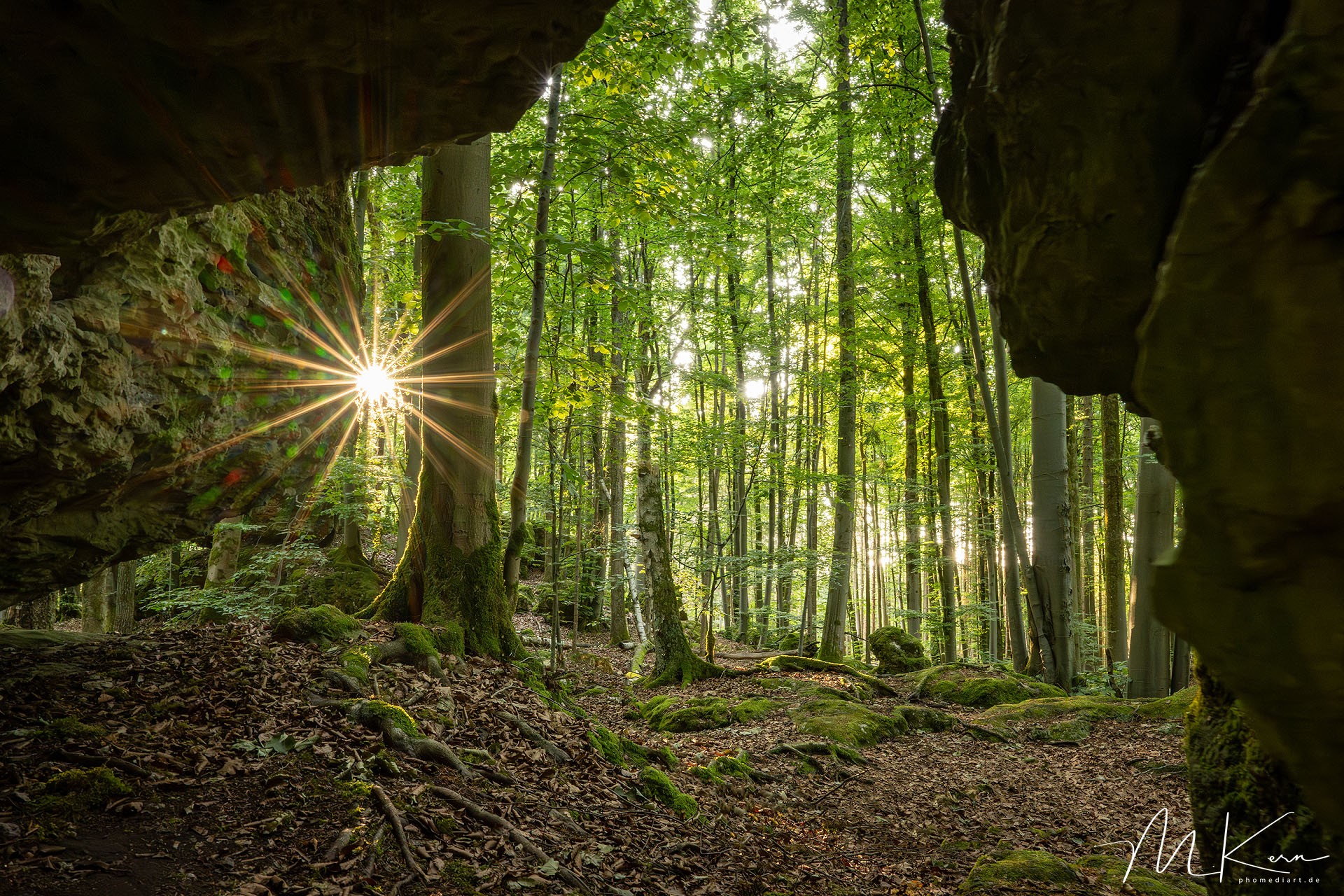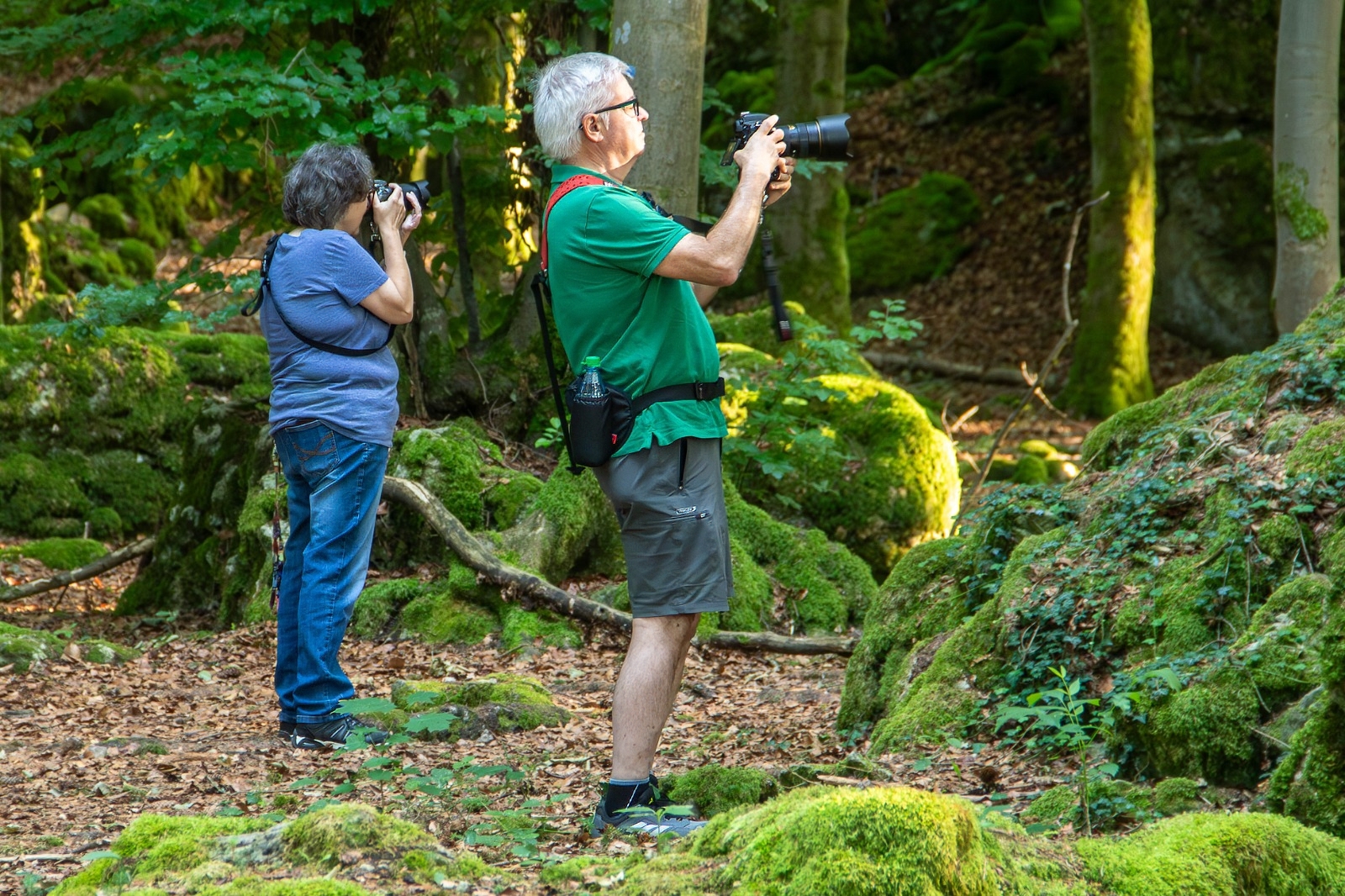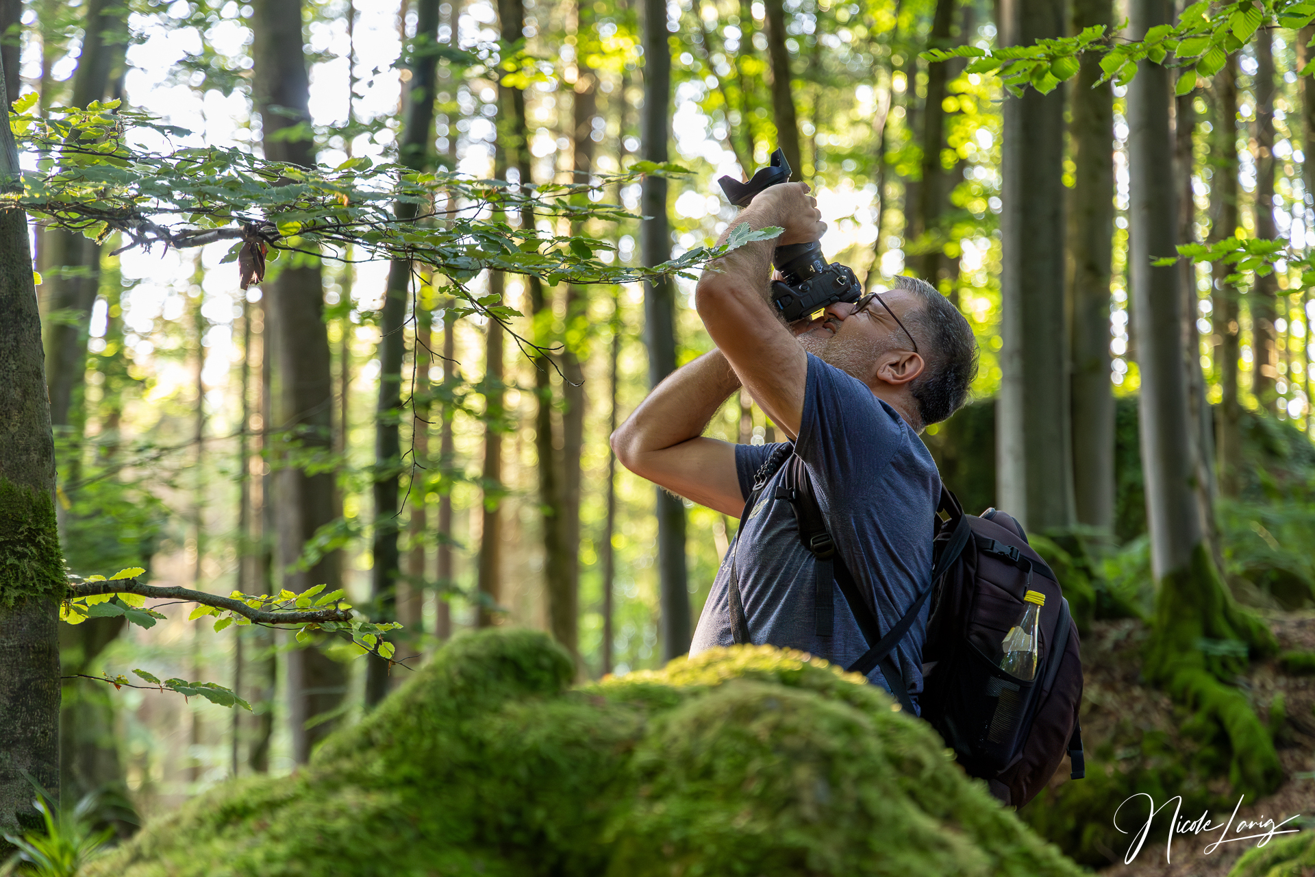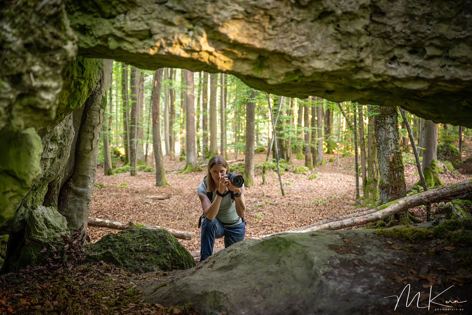 Stark! Mit ganzen neun Teilnehmern war unser Besuch im Felsenlabyrinth Eichig ein riesen Erfolg! Im schattigen Wald ließ es sich auch bei höheren Temperaturen gut aushalten. Für fast jeden unserer Fotografen war es der erste Besuch im Eichiger Felsenlabyrinth. Und wir waren restlos begeistert. Eine absolut sehenswerte Landschaft mit einer Fülle an Motiven. Die tief stehende Sonne lud förmlich dazu ein, „Sonnensterne“ erstrahlen zu lassen. Aber auch im Detail findet sich immer ein lohnenswertes Bild. Ein bisschen fühlt man sich wie ein Abenteurer aus einem Hollywood-Film, wenn man die Felsformationen erkundet. Und mit ein wenig Fantasie erkennt man in den Felsen alles mögliche: Gesichter, Tiere, Fabelwesen usw.