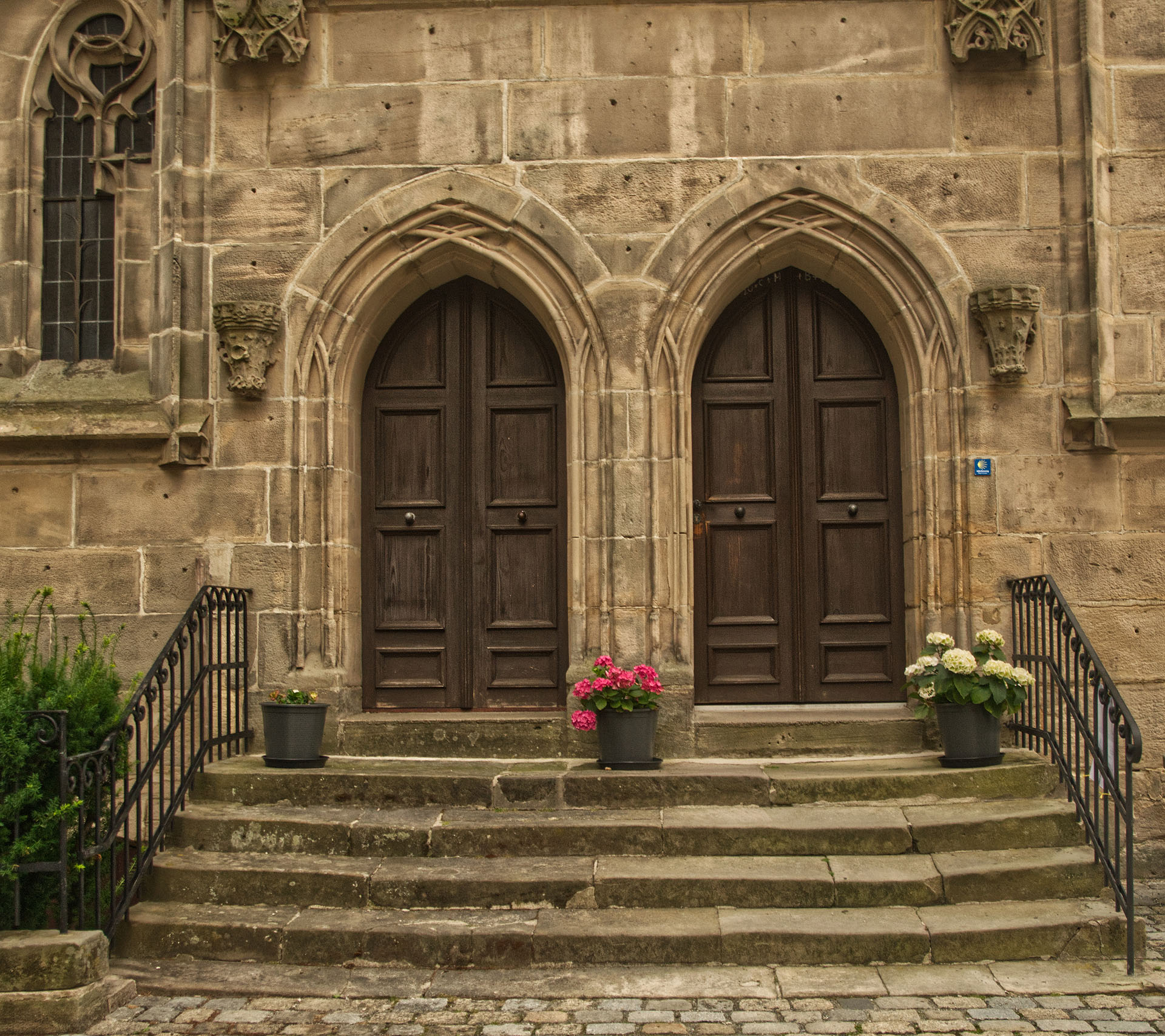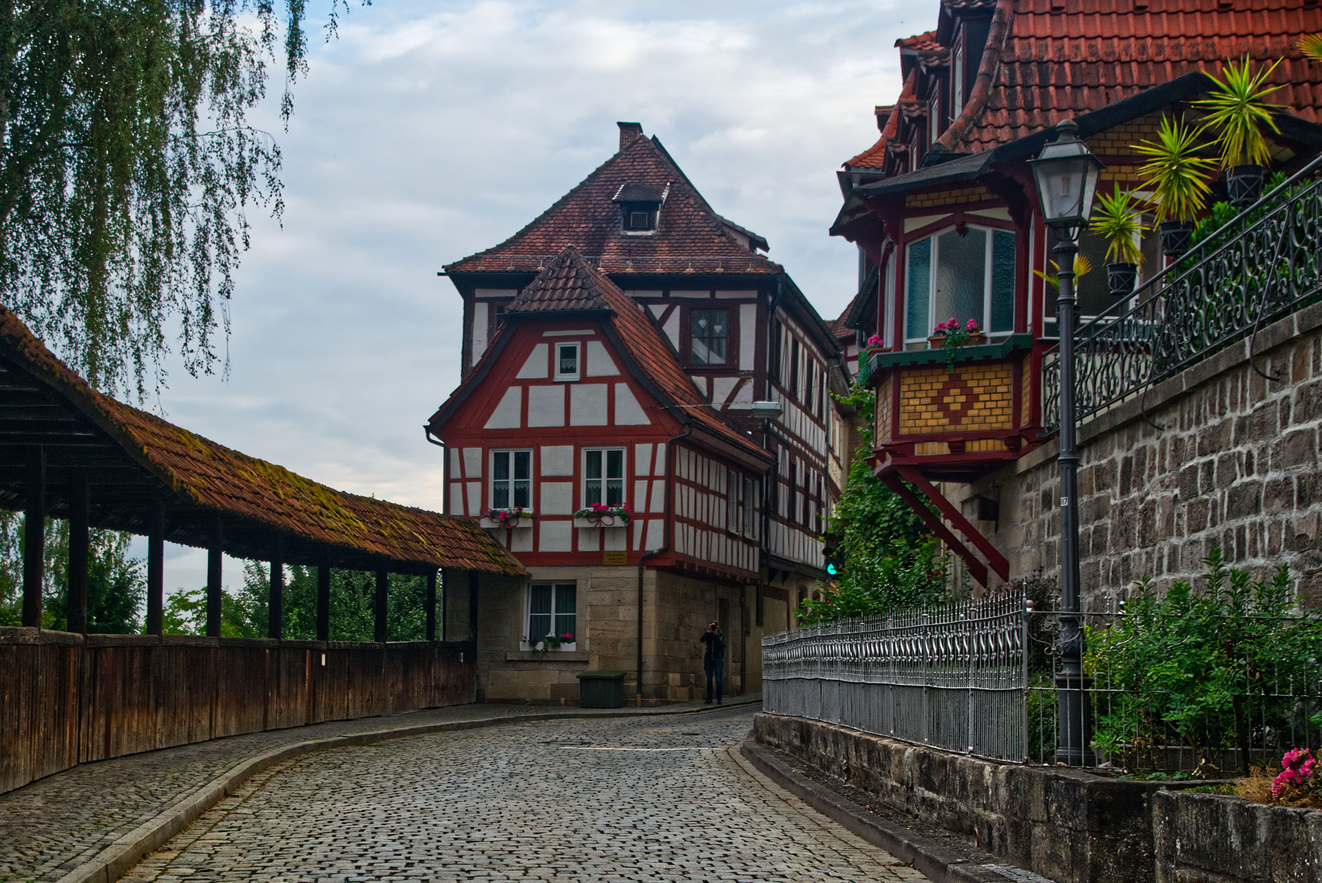 Treffpunkt war der Rosenturm am Marienplatz. Von dort kletterten wir hinauf zur oberen Stadt, standen sowohl bei der Annakapelle als auch der St.-Johannes-Kirche vor verschlossenen Türen. Weiter liefen wir Richtung „scharfes Eck“ mit einem Blick in den Strauer Torweg. Hinauf zum randvoll geparkten Marktplatz und via Amtsgerichtsstraße und durch das Bamberger Tor in die Rosenau. Dort selbstverständlich den Eisernen Steg überquert, um DIE klassische Stadtansicht über die Hasslach zu genießen.