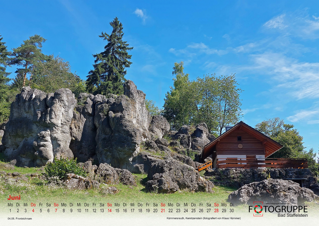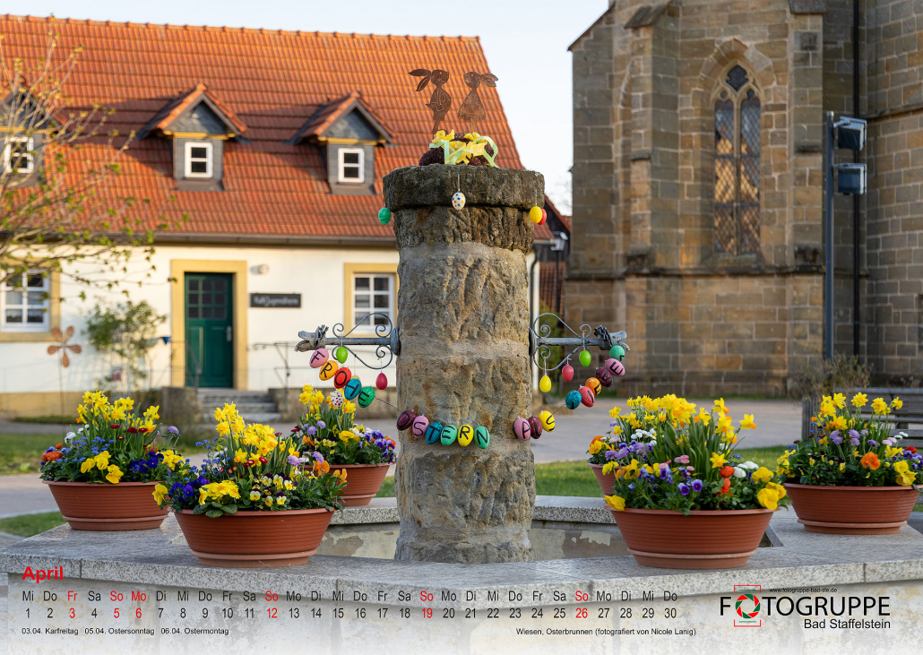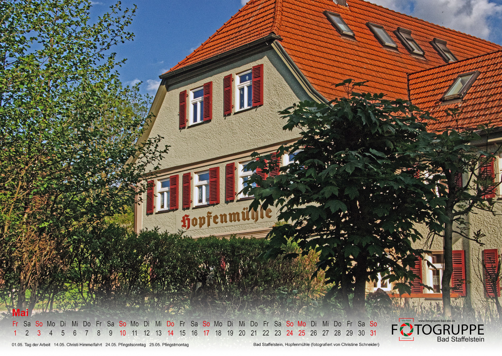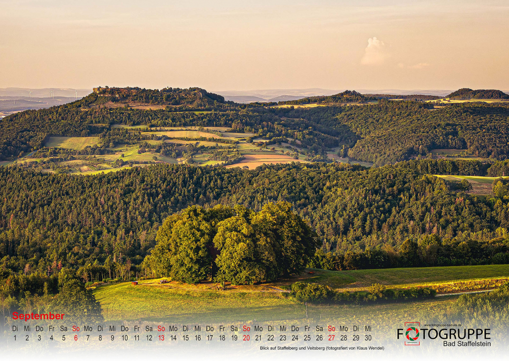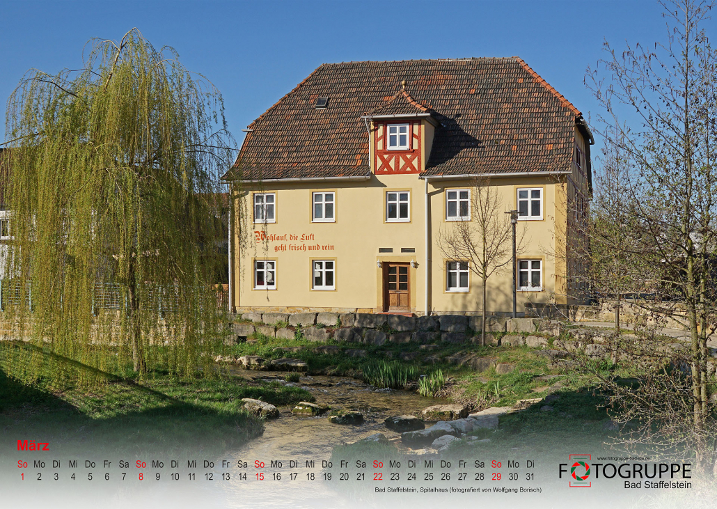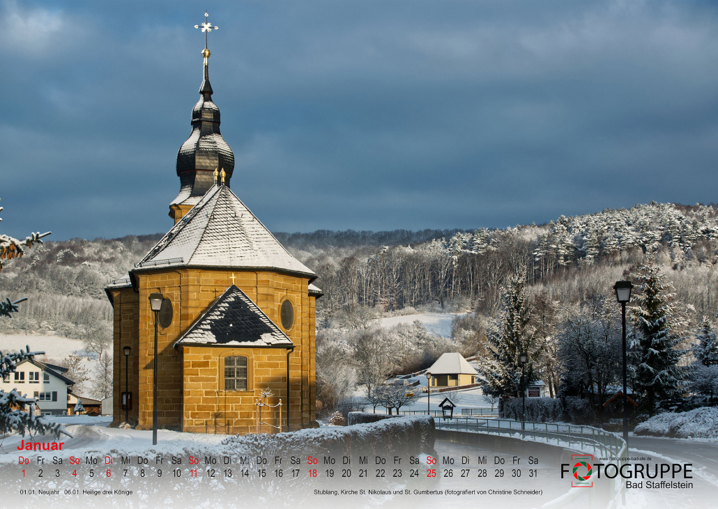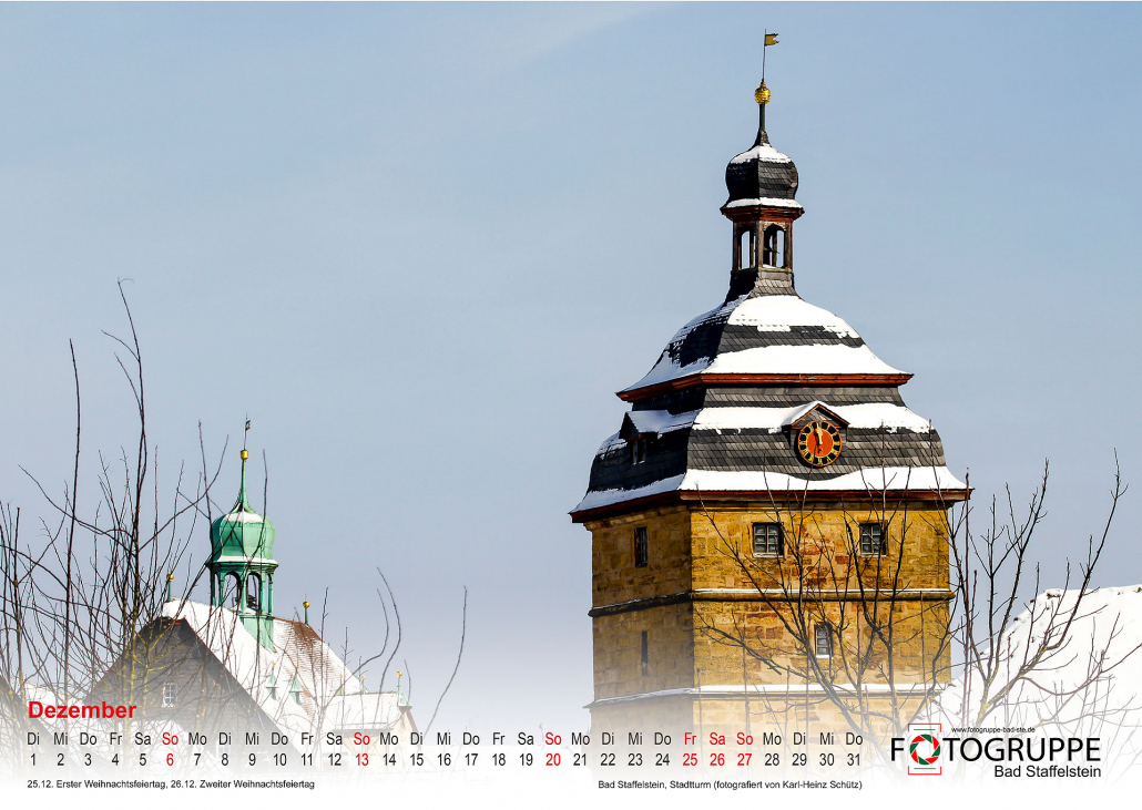 Es war das Jahr 2010, in dem wir uns das erste Mal daran wagten, einen Kalender im Format DIN A3 aufzulegen und den Menschen anzubieten. Die Auflage von 100 bis 150 Stück ist Jahr für Jahr rasch vergriffen. Wir zeigen dabei immer Bilder aus Bad Staffelstein und seiner Umgebung. Jedes Jahr finden sich andere Sichtweisen. Auch das Layout hat sich über die Jahre verändert.