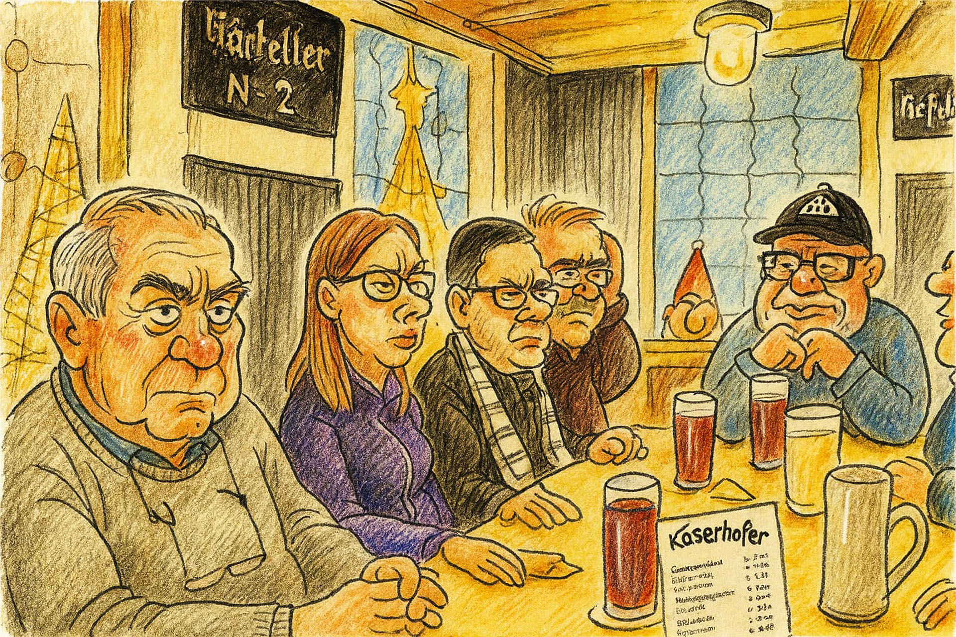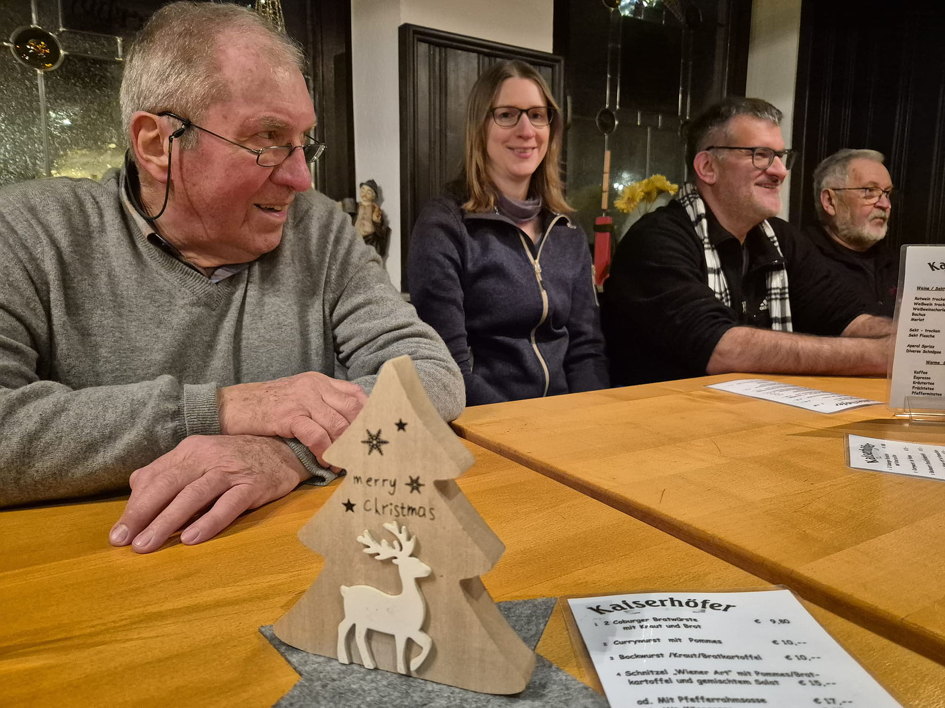 Um 18 Uhr kamen wir schließlich in der Gaststätte der Brauerei Kaiserhof zusammen um ein deftiges Abendessen zu genießen. Lecker. Mit viel Plauderei und Spaß – sowie ein wenig KI-Spielereien – war der schöne Abend schnell vergangen und wir traten die Heimreise an.