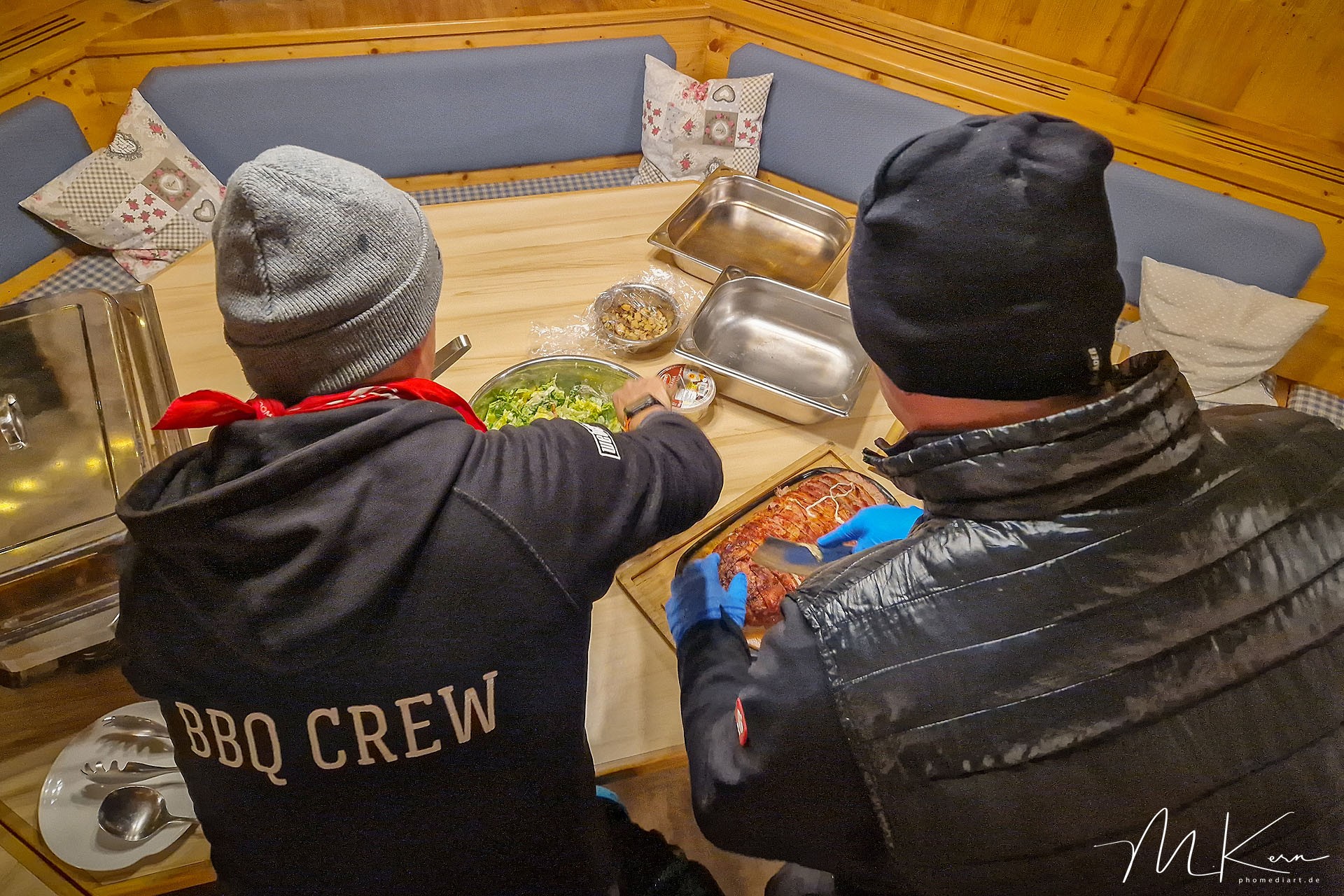 Ein bisschen etwas Besonderes soll es zum Jahresabschluss schon immer sein – was von Mal zu Mal schwieriger wird. Doch auch heuer ist es uns gelungen, ein kulinarisches Highlight an Land zu ziehen. Die BBQ-Crew aus Coburg rückte an und baute ihre drei Grills im Garten auf. Was sie darauf zauberten, das konnte sich sehen und erst recht schmecken lassen. Bacon-Bomb, Flank-Steak, Chicken-Wings, Spare-Ribs und leckere Beilagen kitzelten unsere Gaumen.